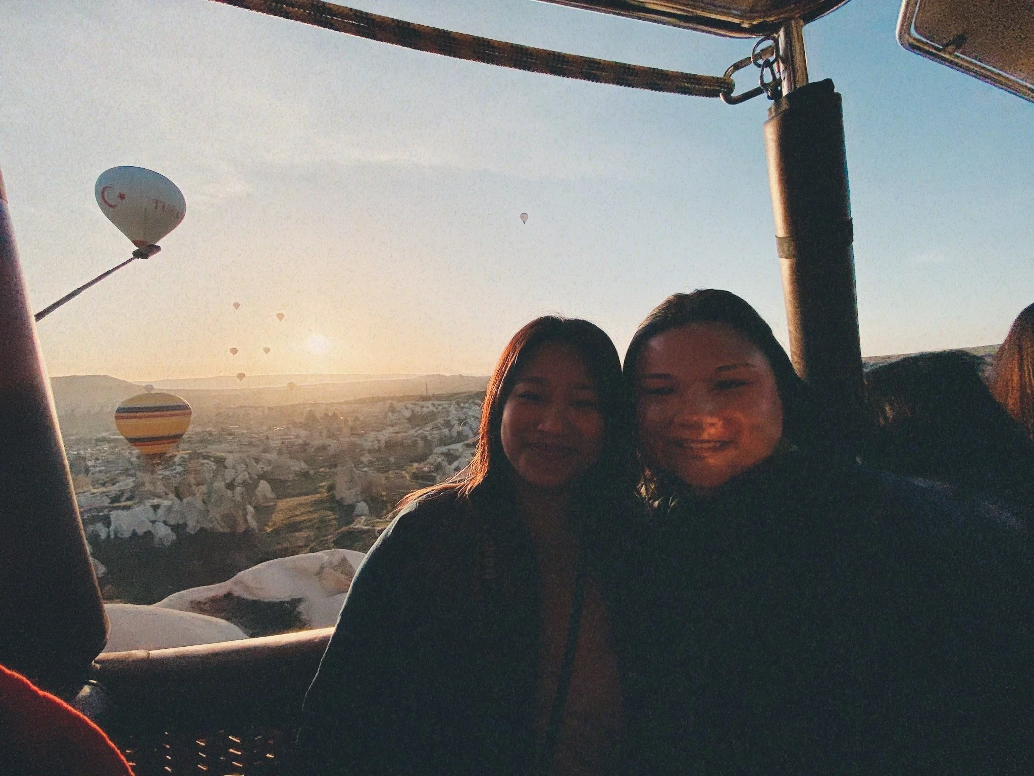 Cat and I in a hot air balloon in Cappadocia, Türkiye.