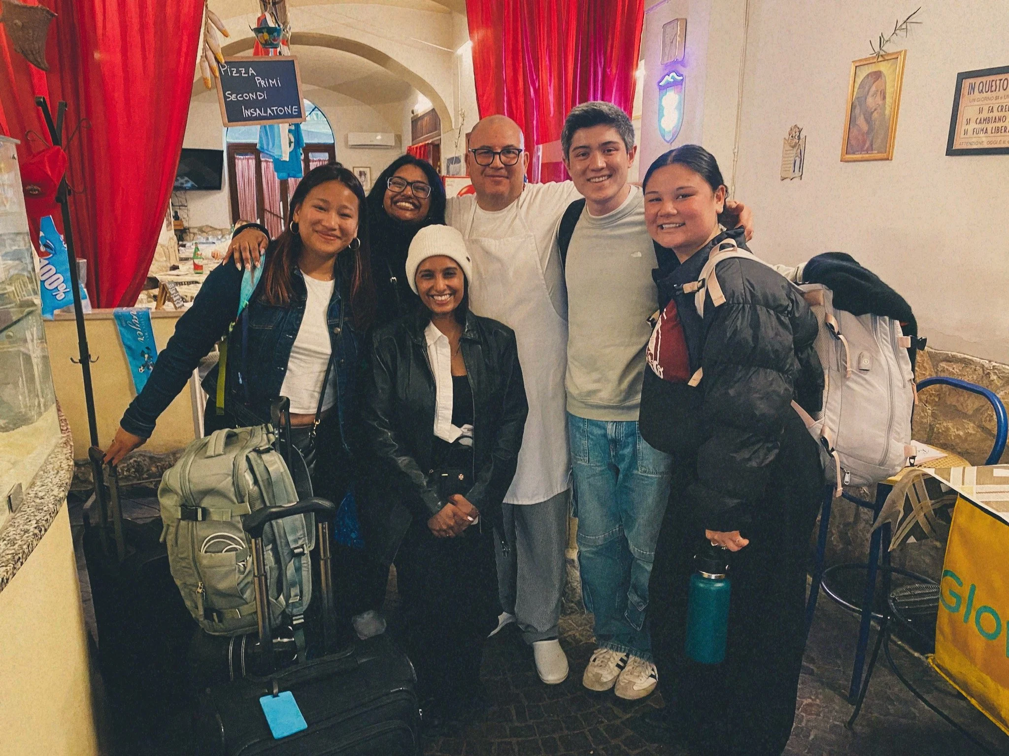 My friends from America and a nice Italian man in his restaurant in Naples, Italy.