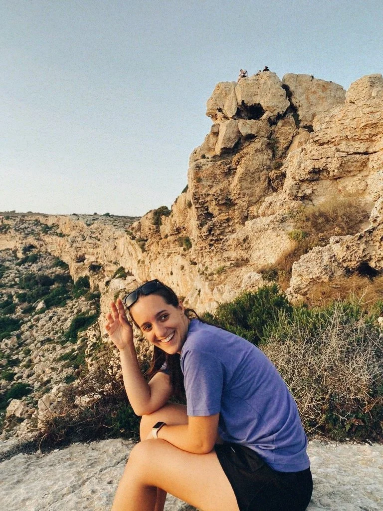 Alyssa on a cliff at St. Peter's Pool, Malta