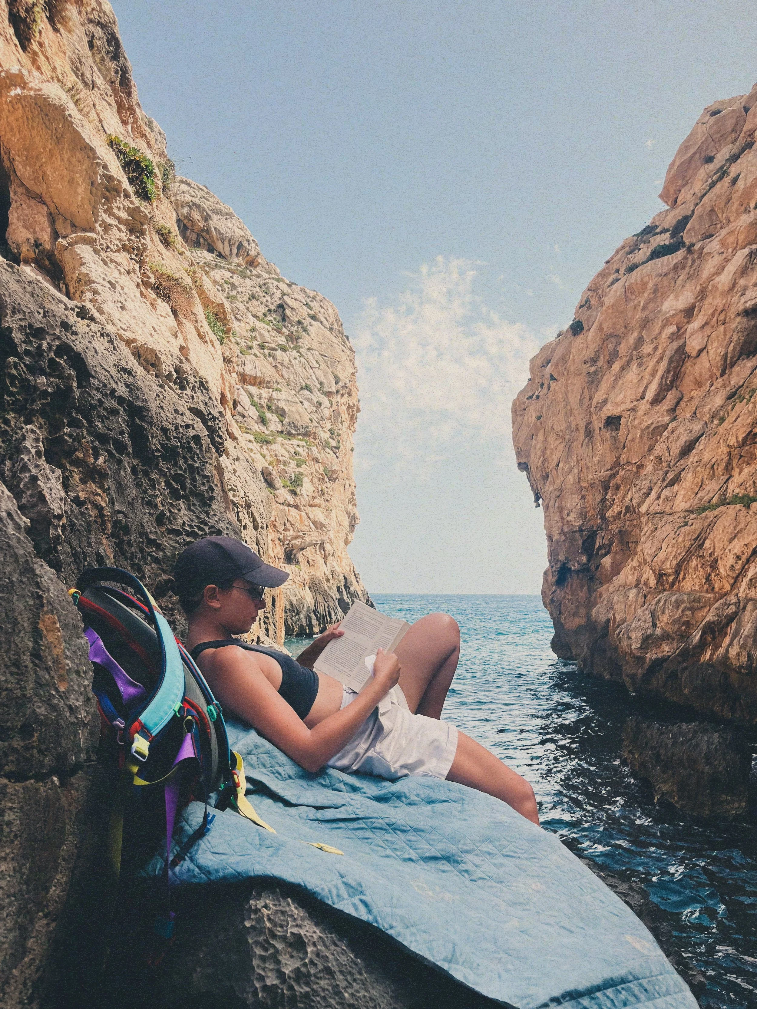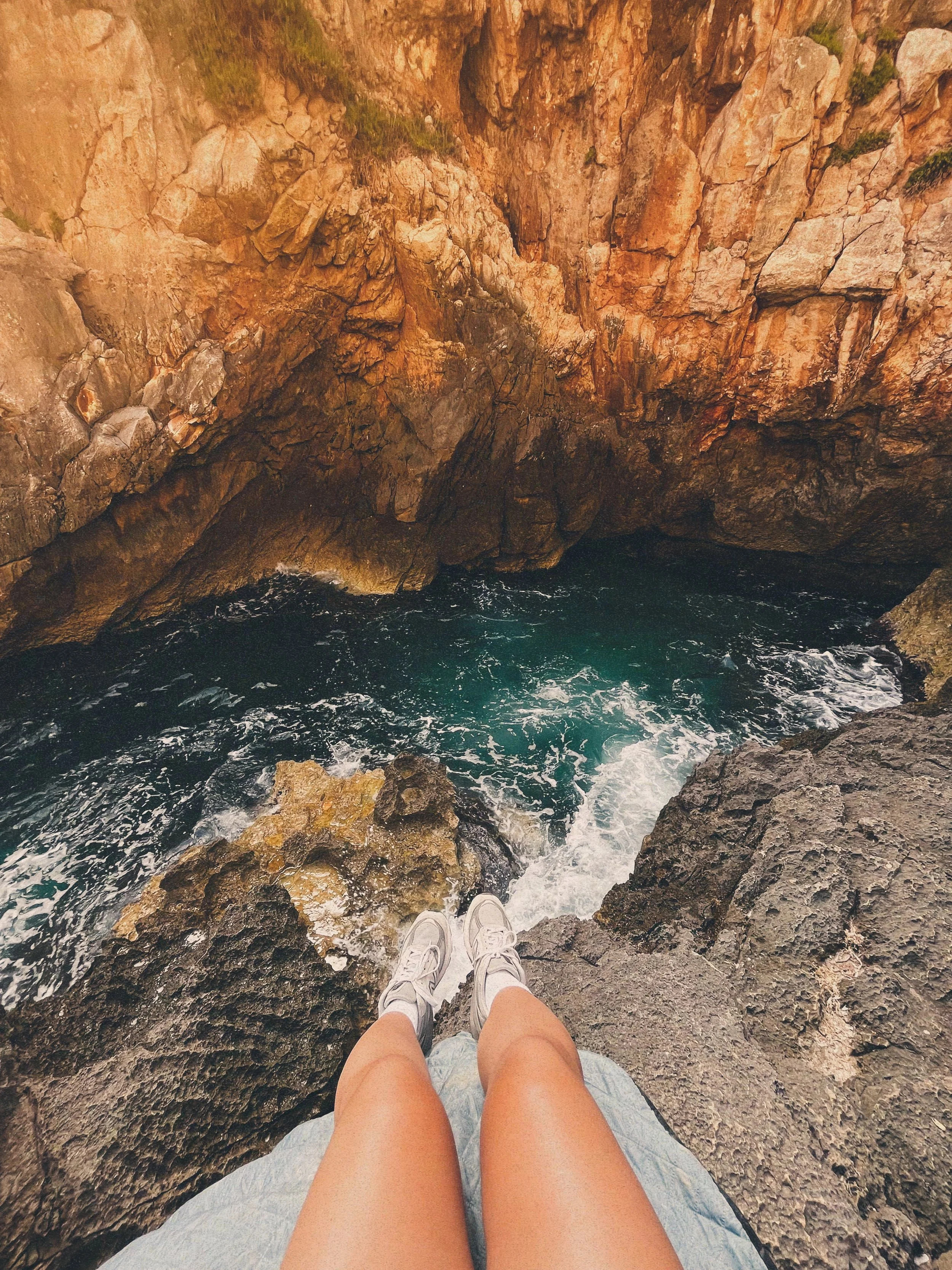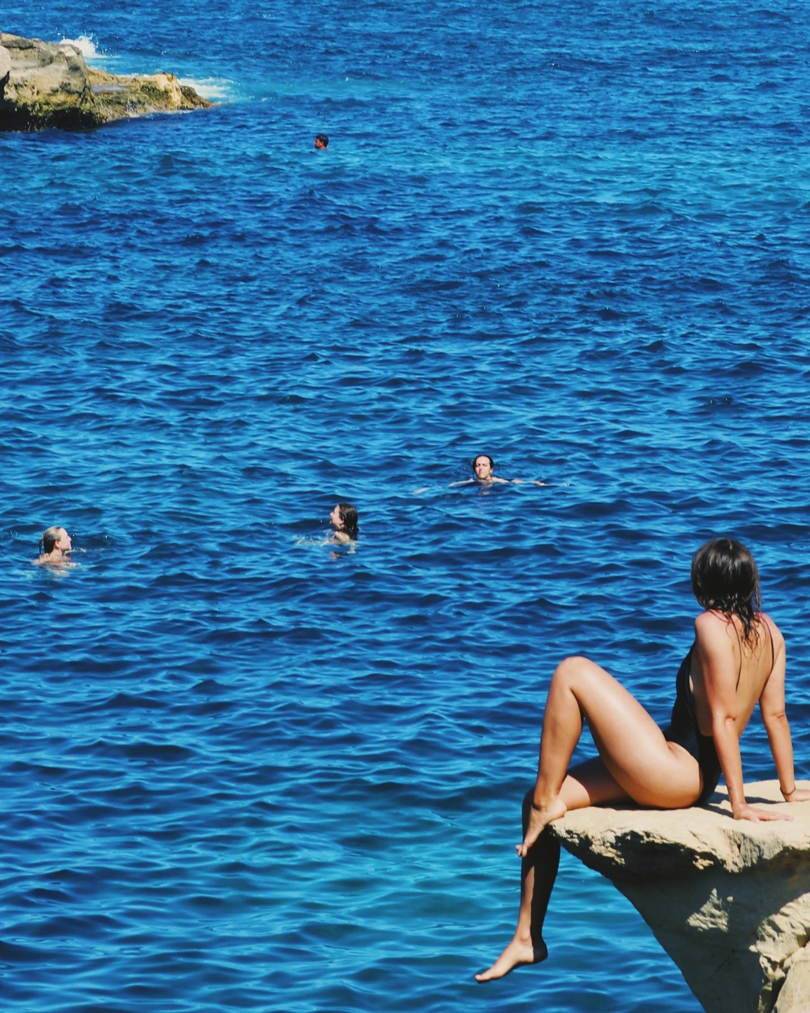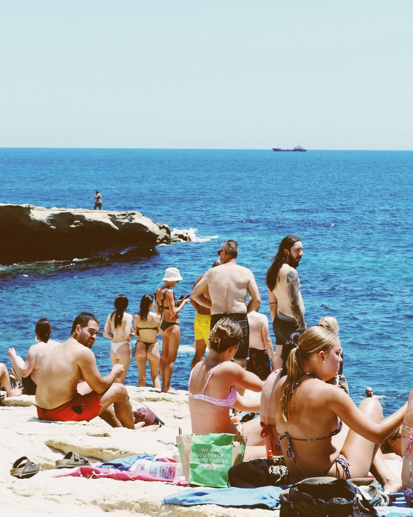 Jumping off the cliff at St. Peter's Pool, Malta.