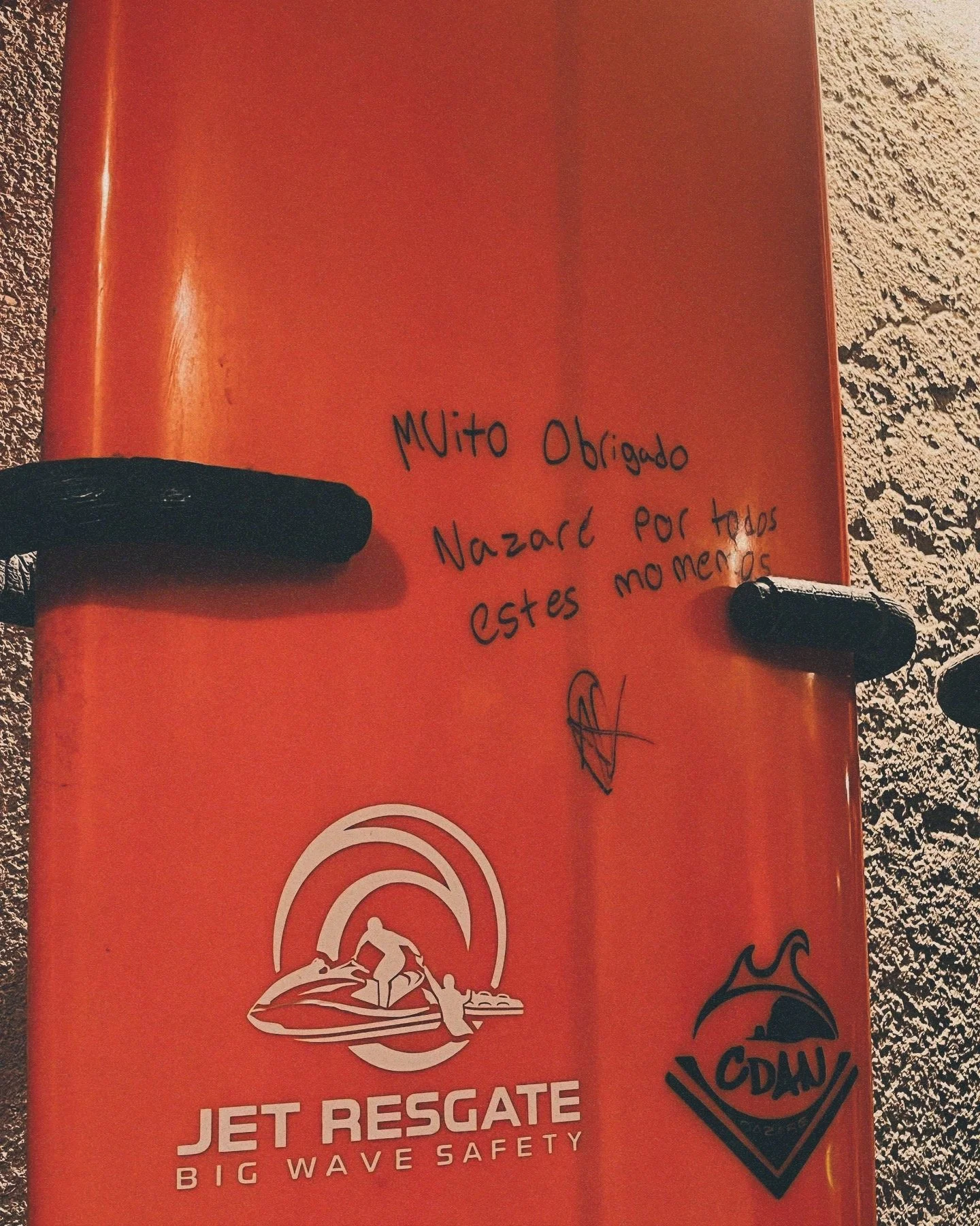 A surfer's note in Nazaré, Portugal.