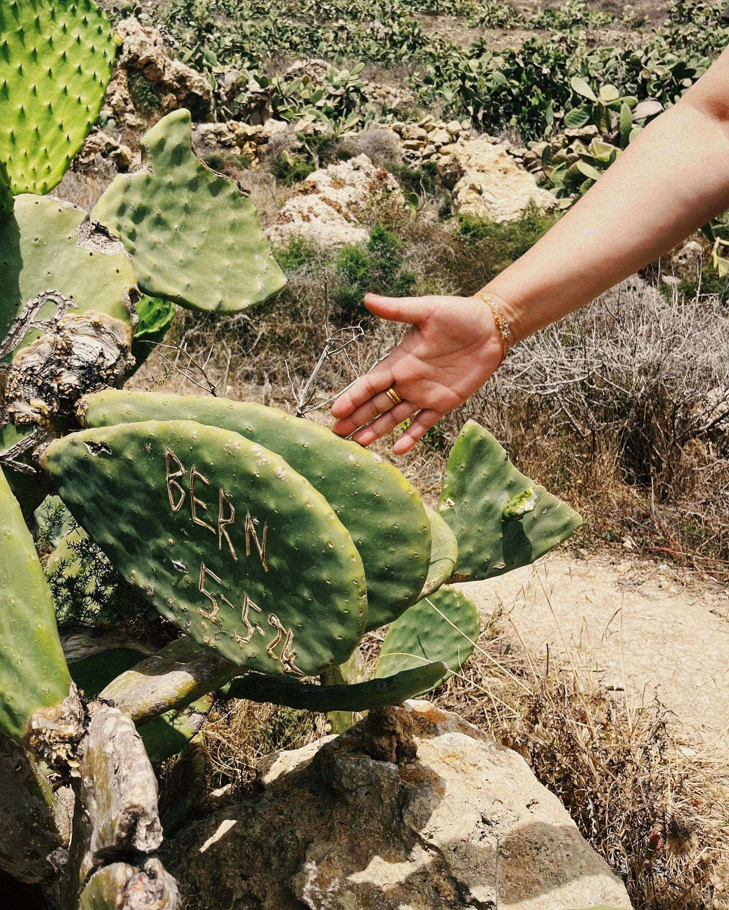 My mom was amazed by the size of the cacti. She wanted to use her hand as a size comparison.